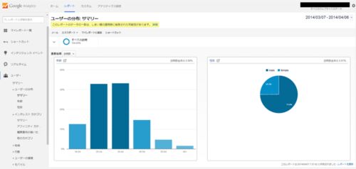 前回に引き続きGoogleAnalytics設定について。 いやぁGoogleAnalyticsはブログへの訪問者数やPV数など以外にも、上の画像ようにその訪問者の年齢層や性別まで表示してくれます。